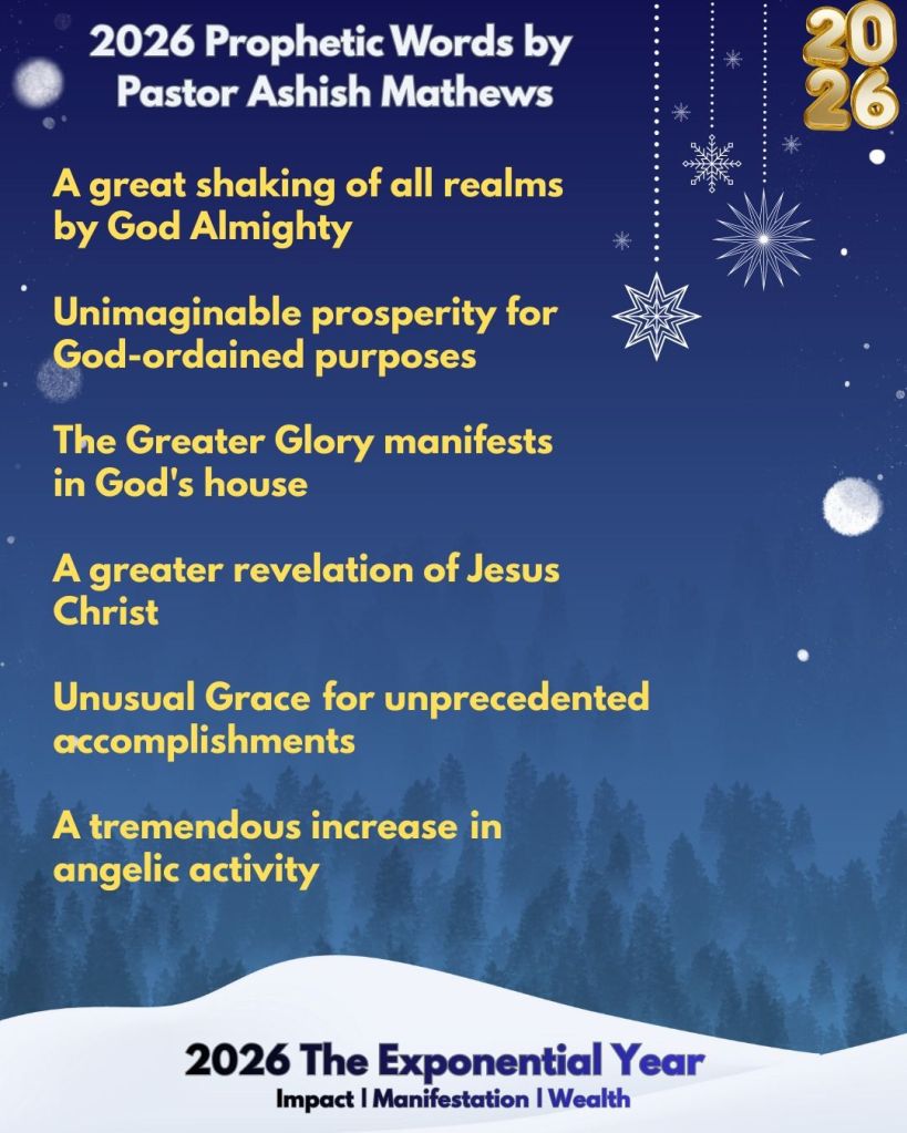 1. As per the Word of the Lord, I affirm that 2026 is an exponential year for me and for my church, The Ark—exponential impact, exponential manifestation, and exponential wealth, in Jesus’ name. Amen.